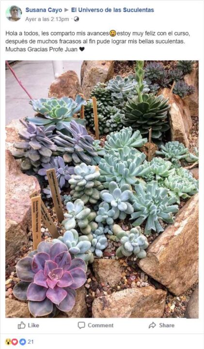 Más de 200 alumnos apasionados por el cultivo de Suculentas y Cactus. Pregunta tus dudas y comparte tus experiencias.