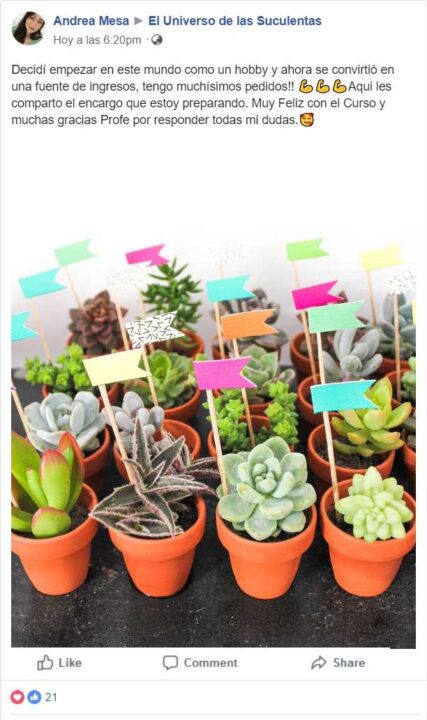 - Es rentable porque se cobra por cada decoración, mientras más decores con Suculentas mayores serán tus ingresos con un solo cliente.