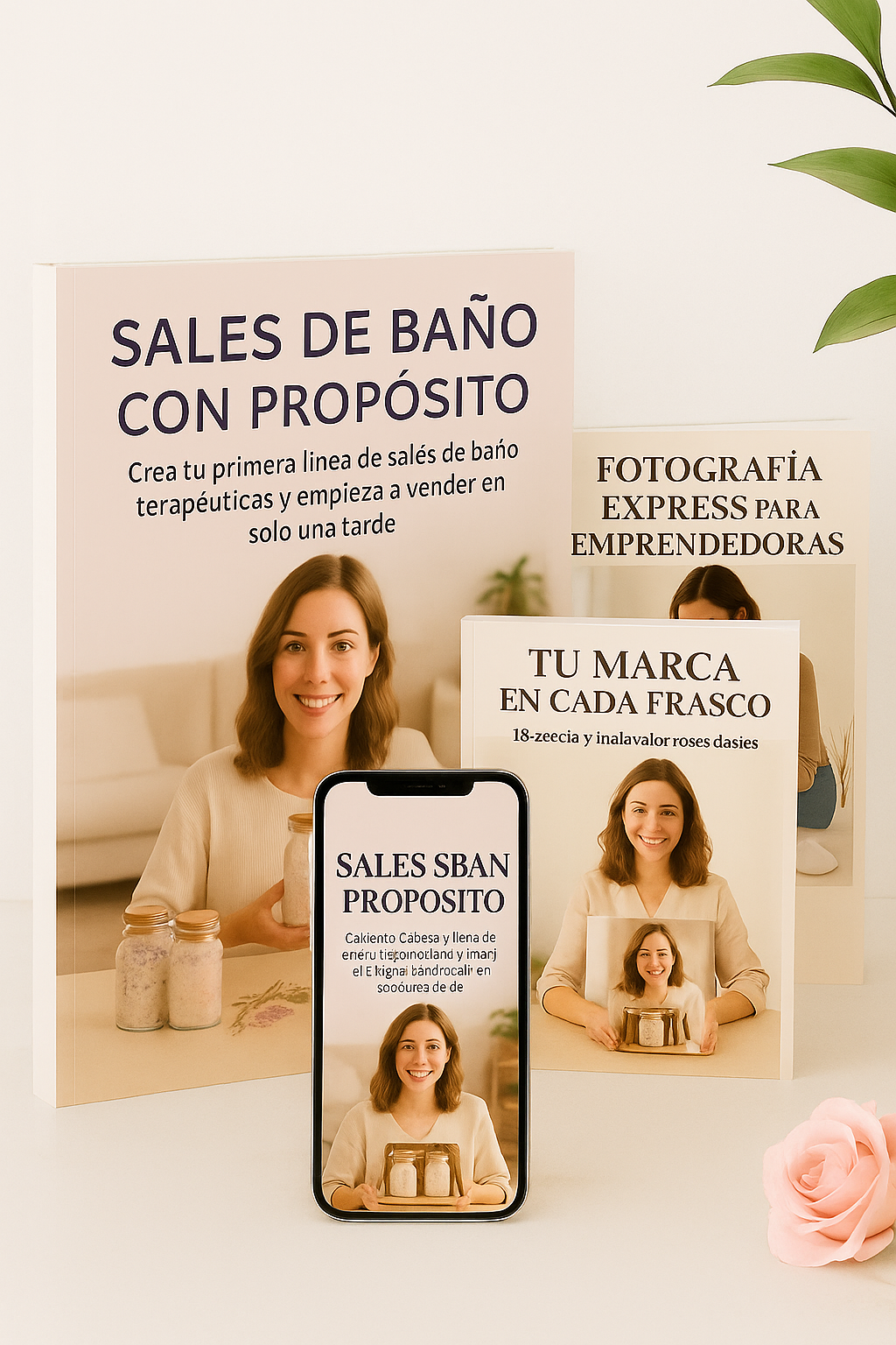 ✔️ Ebook «SALES DE BAÑO CON PROPÓSITO» con 30 fórmulas exclusivas de sales de baño terapéuticas para uso personal o para vender.