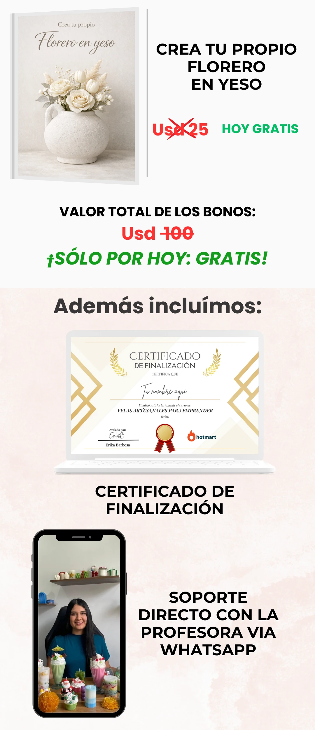 ¡Claro que sí! Tendrás acceso a una comunidad VIP en WhatsApp, donde podrás hacer preguntas, compartir tus avances y ver los proyectos de otras alumnas. Te acompañamos en todo momento.